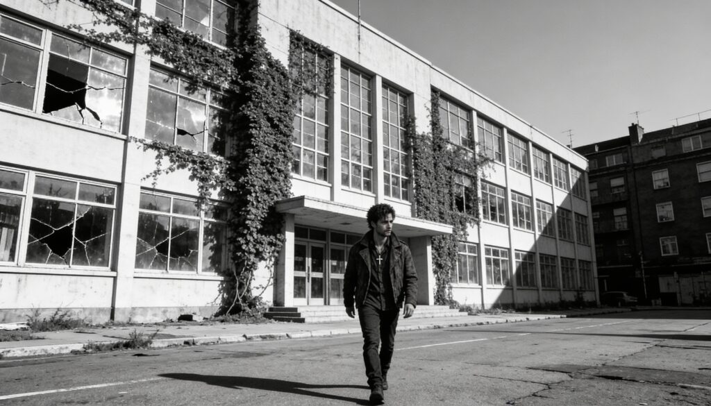 Po południu niebo nad Blackwood zasnuło się ciężkimi chmurami. Noah ruszył w kierunku dawnej szkoły, której budynek – już od lat opuszczony – przypominał ruinę. Fasada, niegdyś jasna, teraz porosła była bluszczem, a pęknięte szyby odbijały zniekształcone obrazy ulicy. Przed drzwiami głównymi zatrzymał się na chwilę. Wspomnienia uderzyły go niespodziewanie – śmiech na korytarzach, dźwięk...