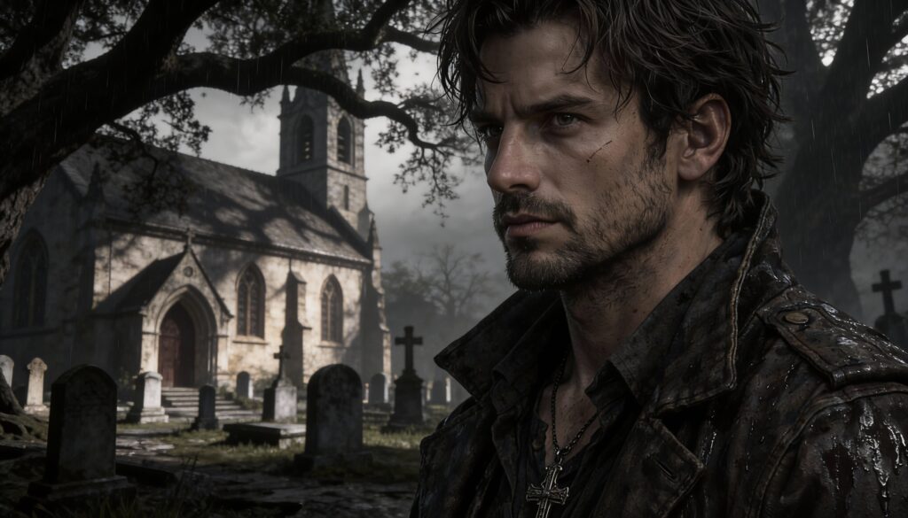 Kościół w Blackwood stał na niewielkim wzniesieniu, skąpany w cieniu sędziwych dębów, których konary przypominały szpony wyciągnięte ku niebu. Był najstarszym budynkiem w miasteczku – starszym nawet niż cmentarz otaczający go ze wszystkich stron. Kamienna fasada, miejscami nadkruszona, wyglądała niczym stary świadek zbrodni, który widział zbyt wiele i zamilkł na wieki. Noah wspinał się powoli...